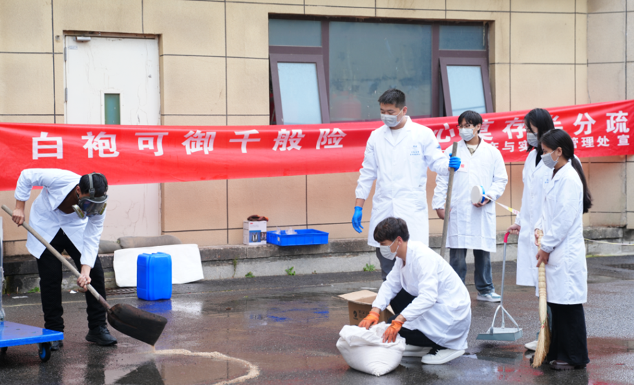 为全面加强实验室安全管理,近日分析测试中心承办了学校开展的危废泄露应急演练,10个相关学院的师生代表参加了活动。