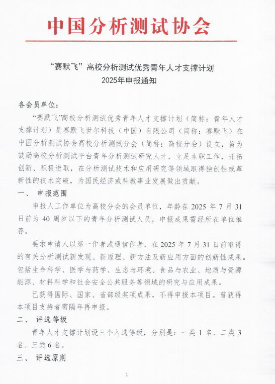 通知公告║“赛默飞”高校分析测试优秀青年人才支撑计划2025年申报通知
